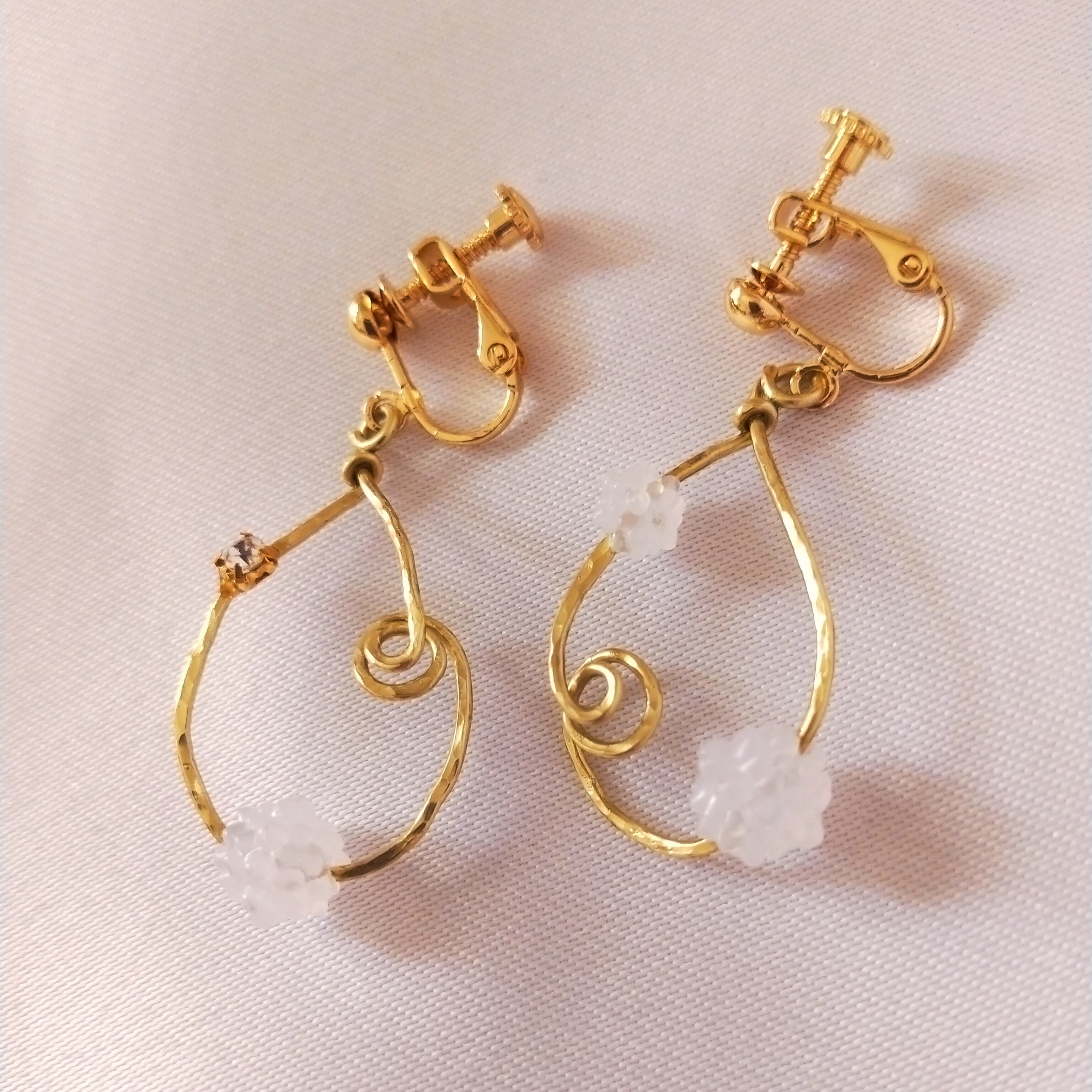 ●イヤリング金具は、ネジバネ・イヤリングパーツとなります。ニッケルフリーメッキ処理の為、金属アレルギーの方でもご利用になれますが、全ての方に大丈夫という保証はないので、お肌に合わない場合はご使用を中止してください。