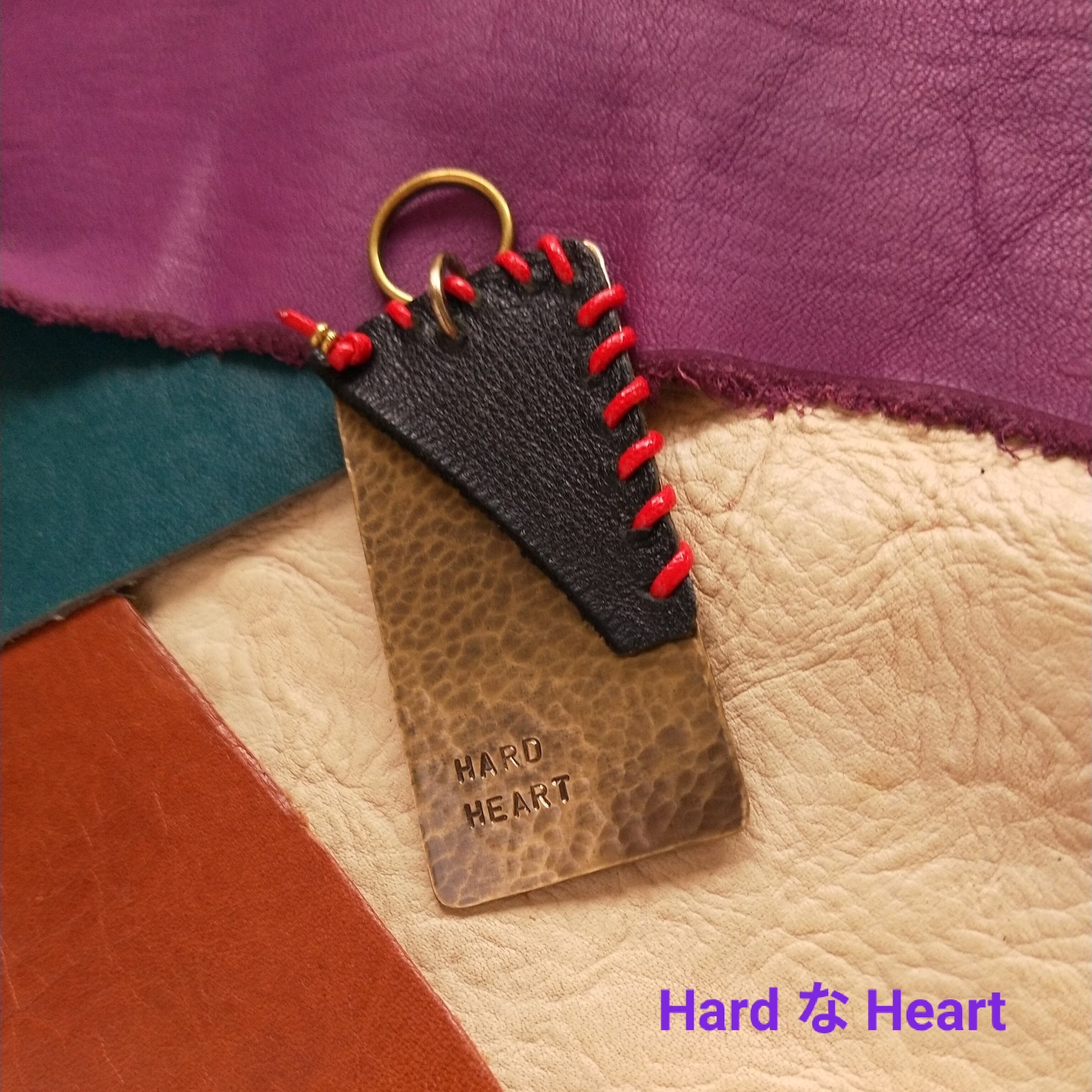 真鍮板と本革を組み合わせてキーホルダーを制作いたしました。